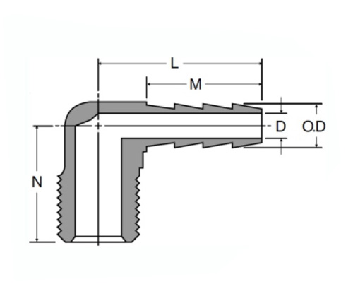 Slang Barb 90 ° armbåge med manliga rörbeslag ger en säker anslutning mellan våra produkter. Denna produkt är utformad för att ta bort eventuella läckpunkter, vilket säkerställer att dina slangar förblir säkert fäst vid dina beslag.